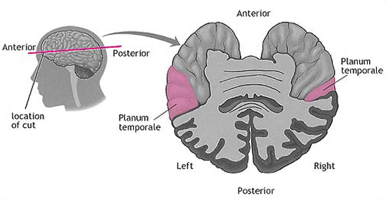 It all started with a 2001 study in which Dr. Foundas and colleagues found that a portion of the auditory association cortex known as the planum temporale, which is normally larger in the left hemisphere, was larger and more symmetric in both hemispheres in people who stutter.